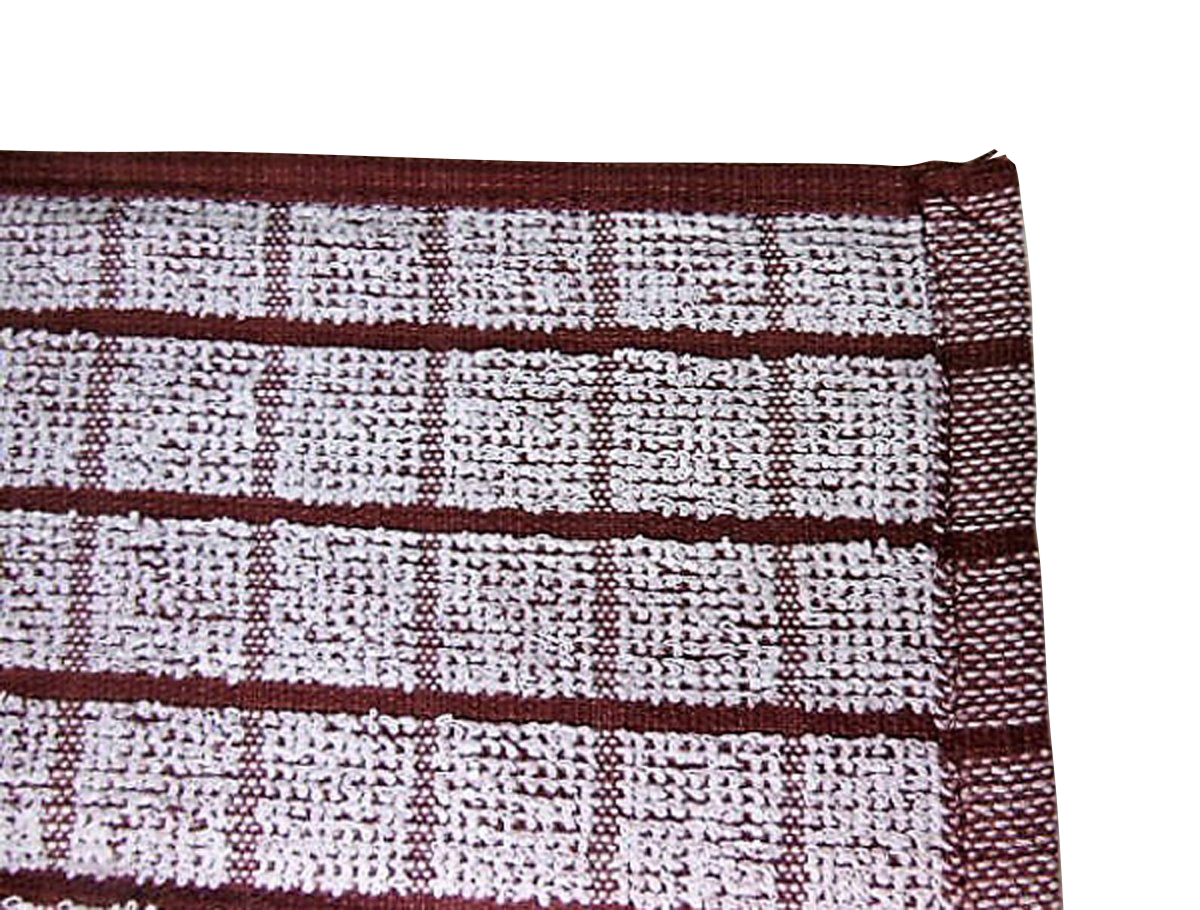 茶色の格子なのでご使用シーンを選ばずどんな場面でも気軽に利用できるオシボリタオルです。ご家庭から飲食店、ゴルフ場、ホテル、旅館、介護施設、美容室、ネイルサロン等で幅広くご利用頂いております。